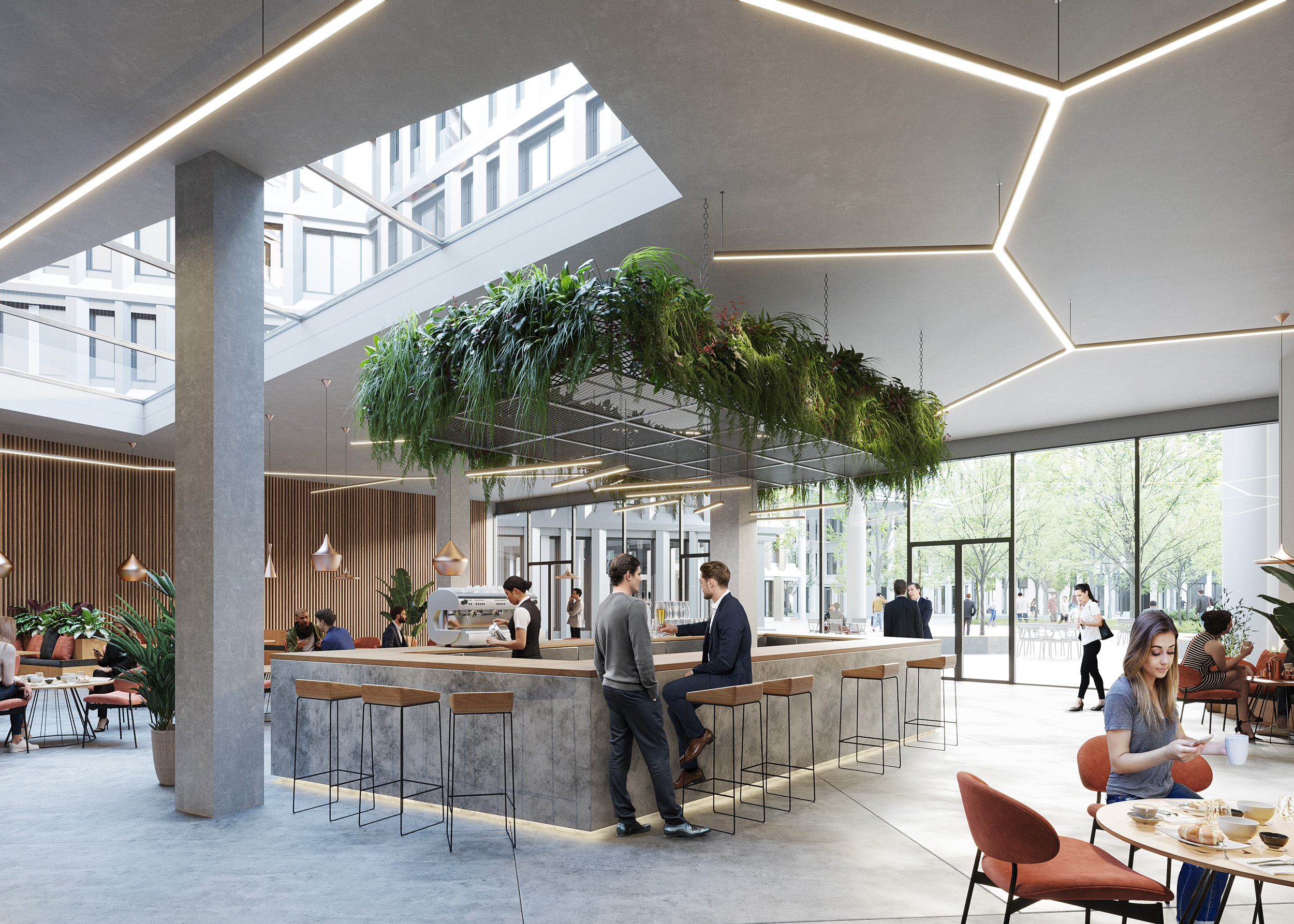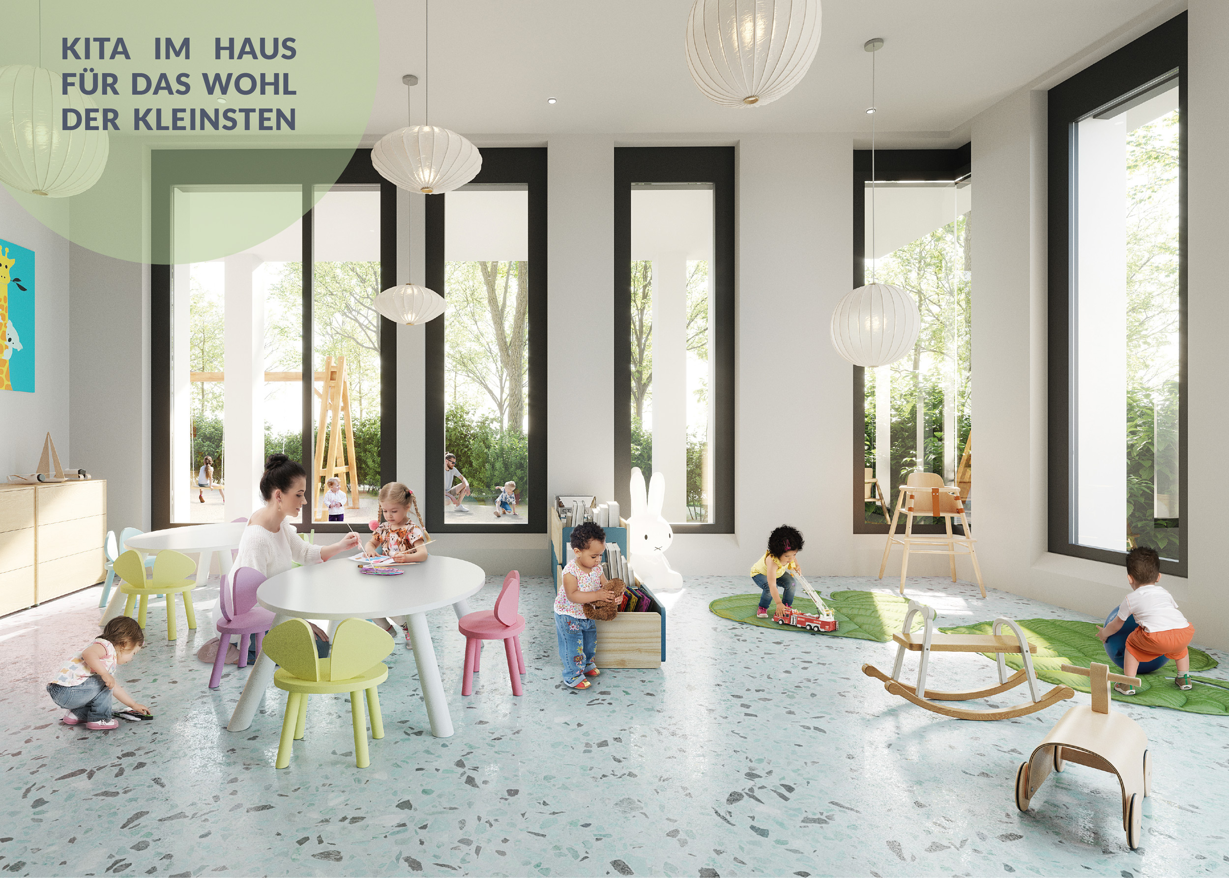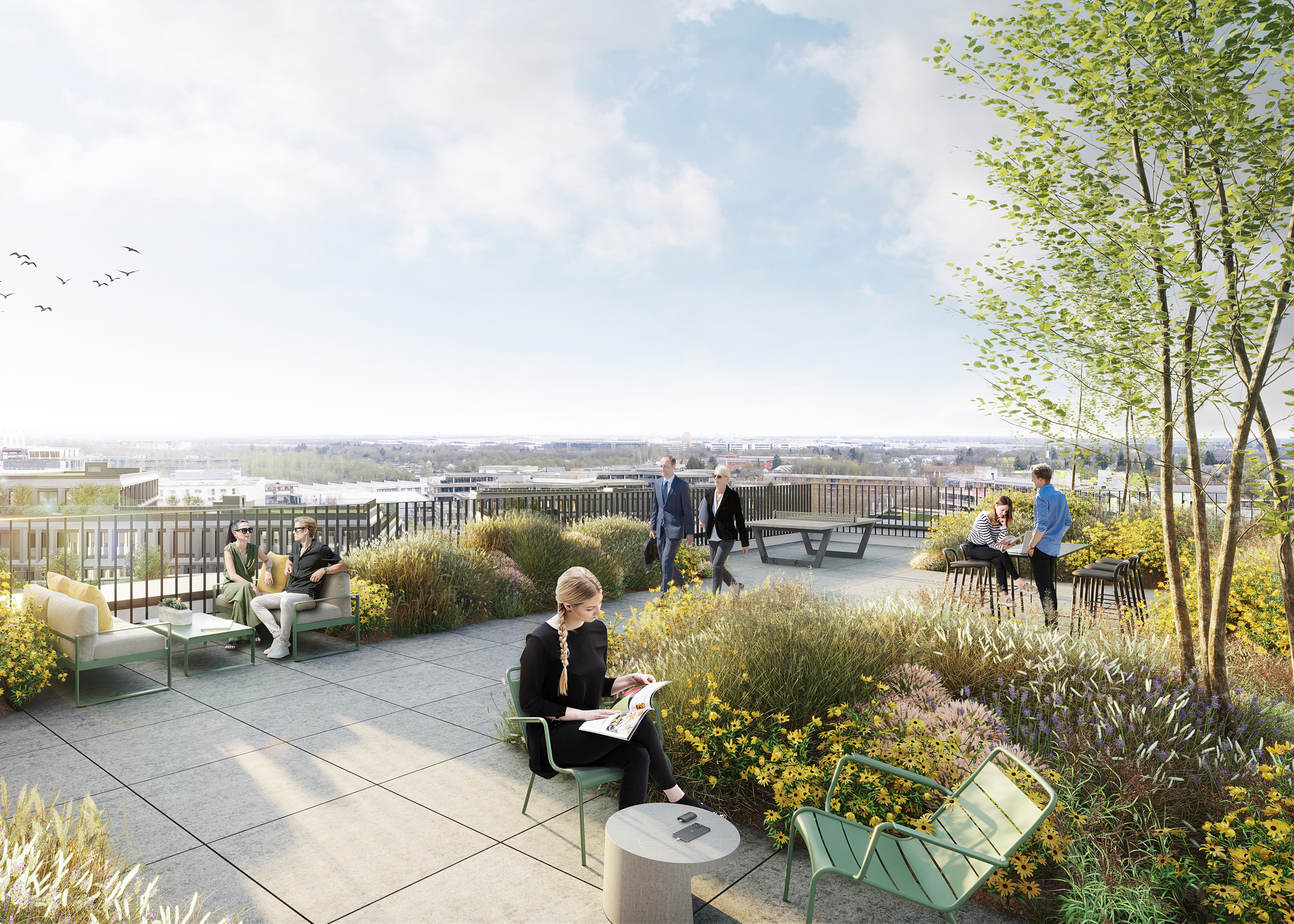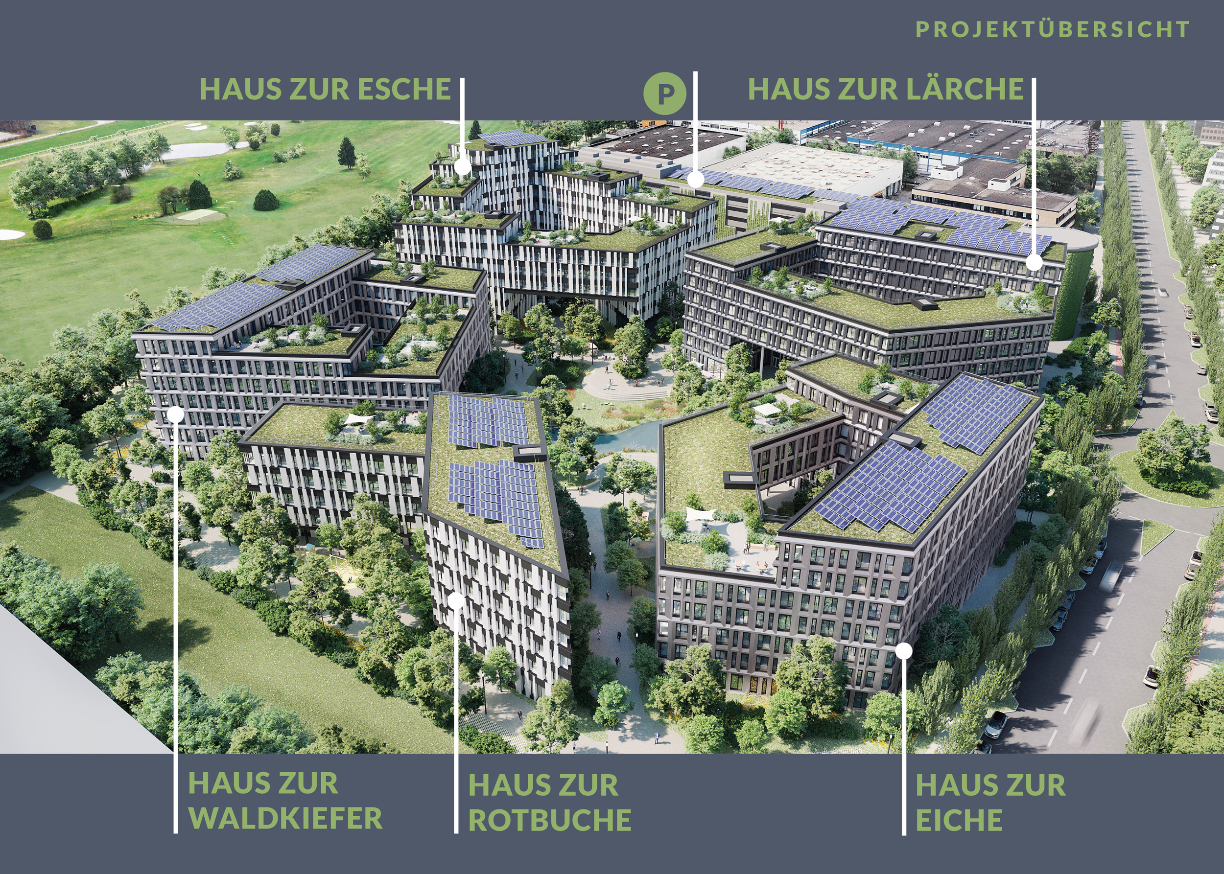 Für diesen Office-Campus wurde ein ganzheitliches Design entwickelt. Diese geht vorallem auf die gute Lage sowie die Nachhaltigkeit des Projektes ein.