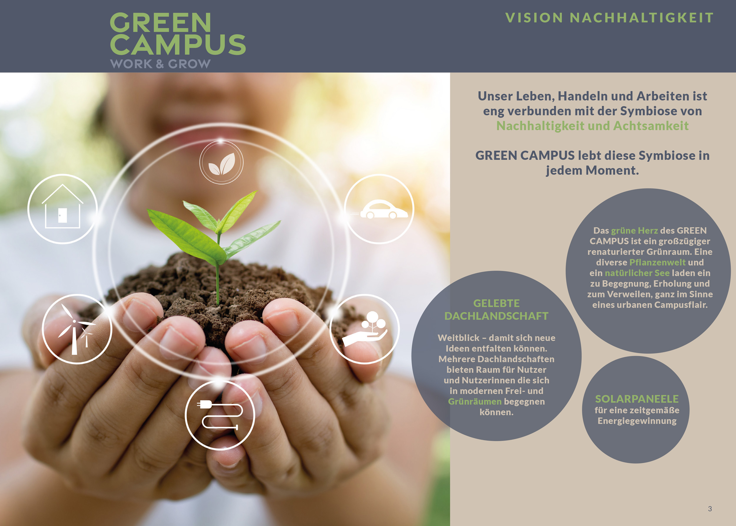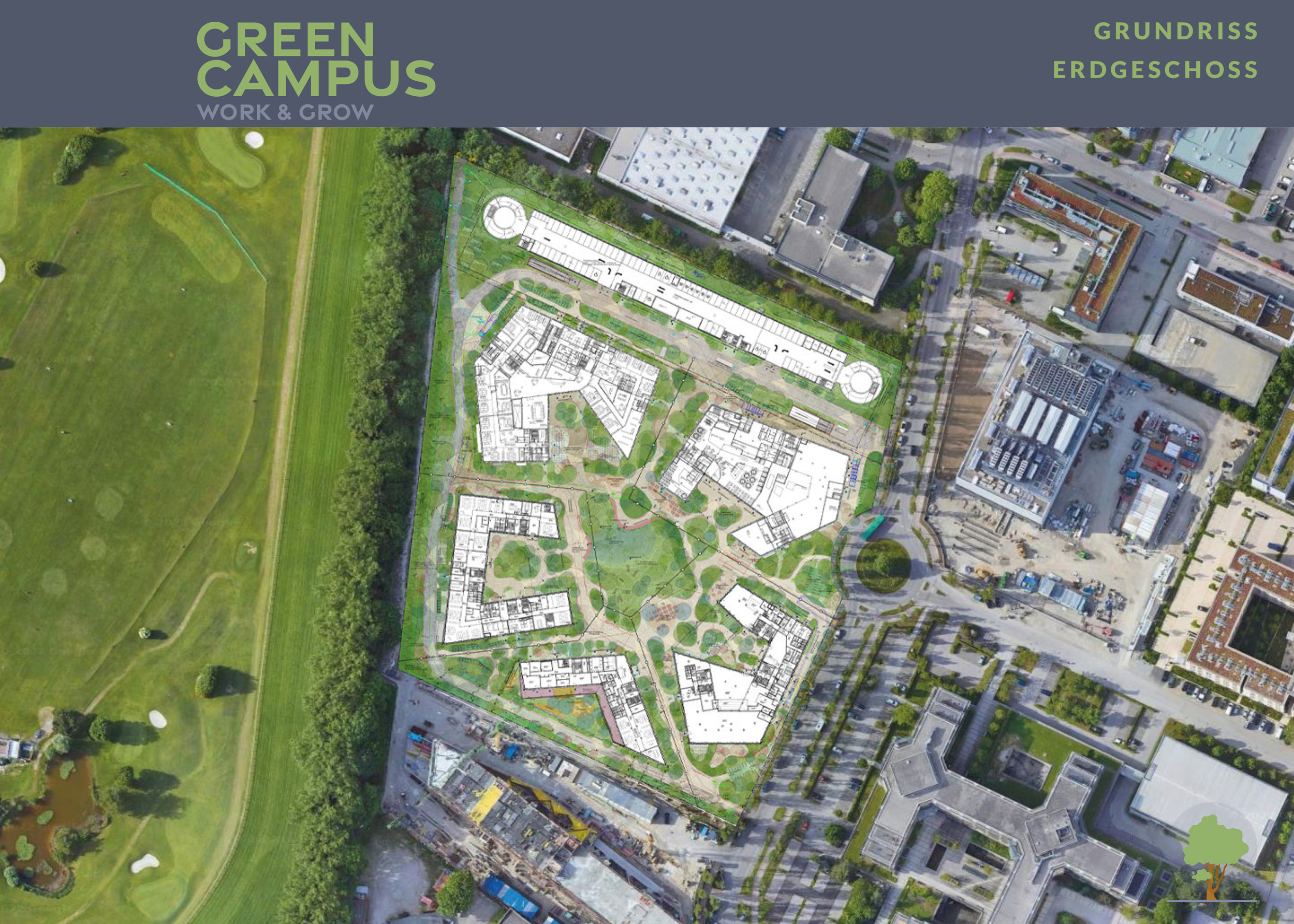 Auf dem bislang unbebauten Grundstück wird ein Campus Park errichtet, der allen Anforderungen für zukunftsorientiertes, modernes Arbeiten entspricht.
