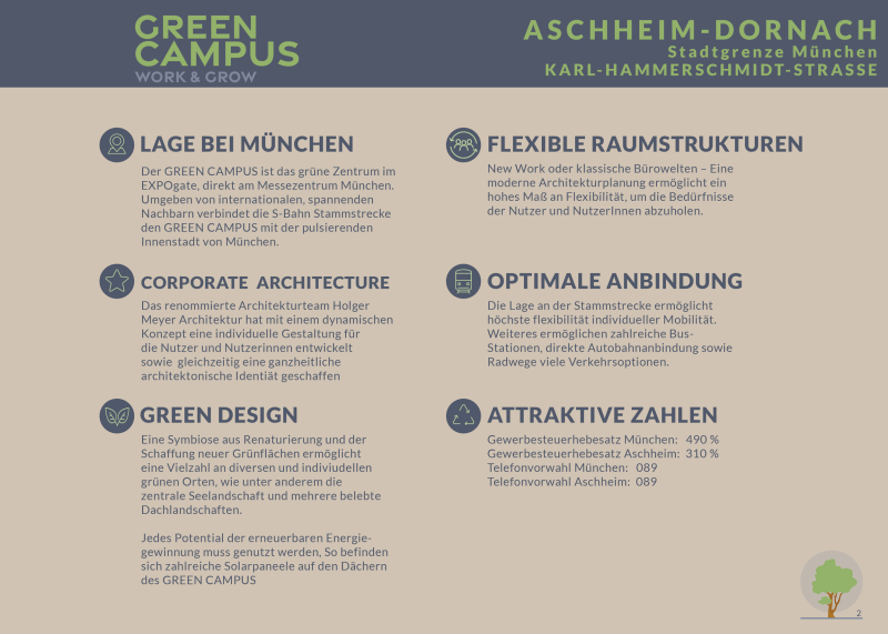 Für den GREEN CAMPUS in München wurde ein ganzheitliches Design entwickelt. Diese geht vorallem auf die gute Lage sowie die Nachhaltigkeit des Projektes ein.